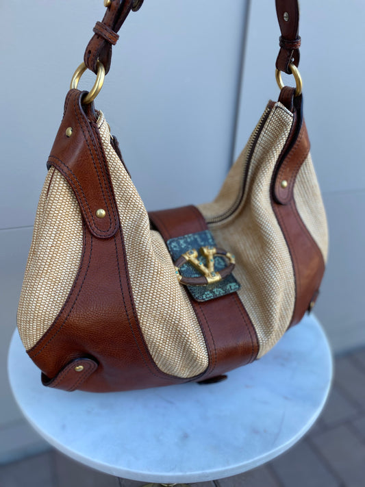 Valentino Garavani Leather and Raffia Shoulder Bag