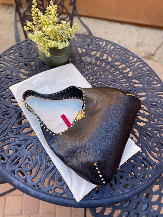 Valentino Garavani Rockstud Leather Hobo Bag