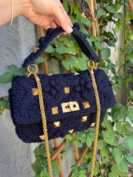 Valentino Garavani Large Crochet Pyramid Stud Satchel Crossbody