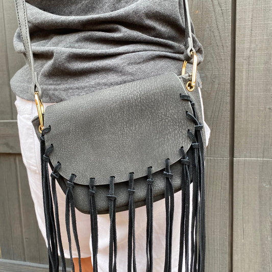 Free People St. Germain Black Fringe Crossbody Bag