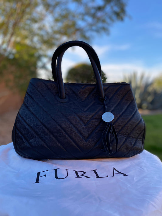 Furla Quilted Chevron Pattern Leather Satchel