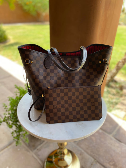 Louis Vuitton Neverfull MM Damier Ebene Tote with Pouch