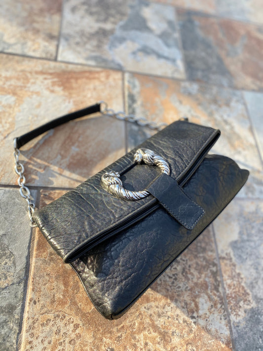 Bvlgari Vintage Black Leather Decollete Shoulder Bag