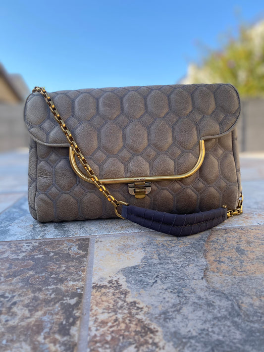 Nina Ricci Quilted Distressed Leather Smile Shoulder Bag