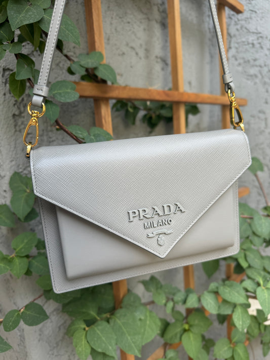 Prada Saffiano Calfskin Monochrome Envelope Crossbody