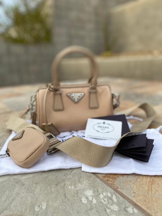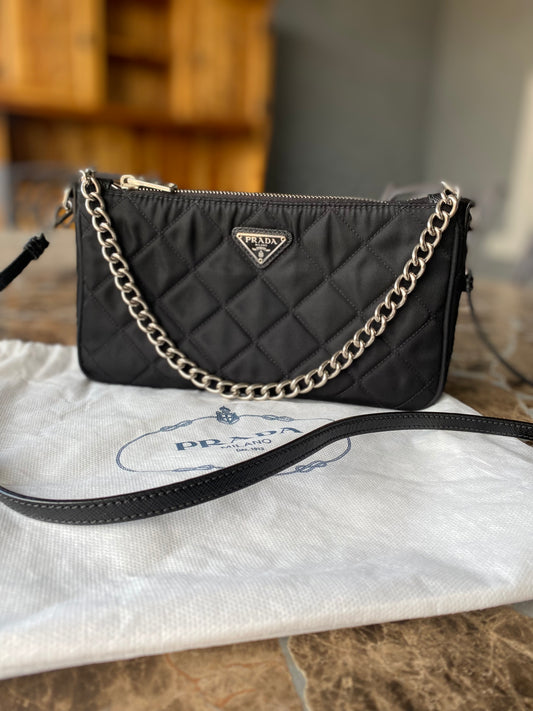 Prada Nylon Quilted Convertible Pochette Chain Crossbody