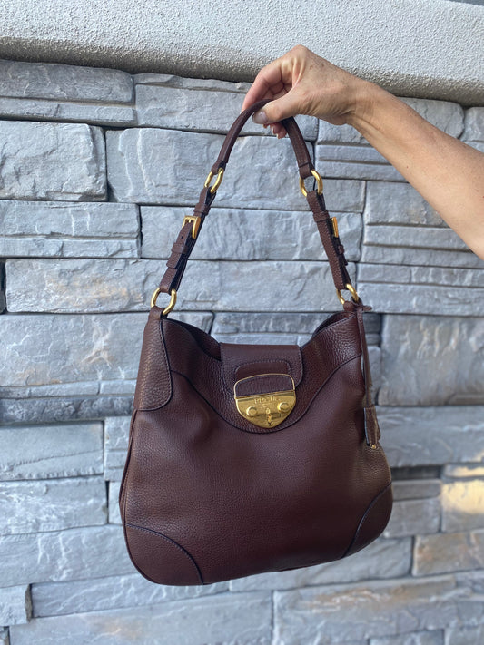 Prada Pushlock Hobo Vitello Daino Shoulder Bag