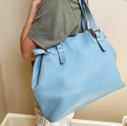 Prada Pebbled Leather Shopping Tote Buckle Tote