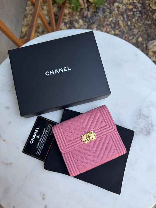 Chanel Boy Caviar Leather Chevron Wallet