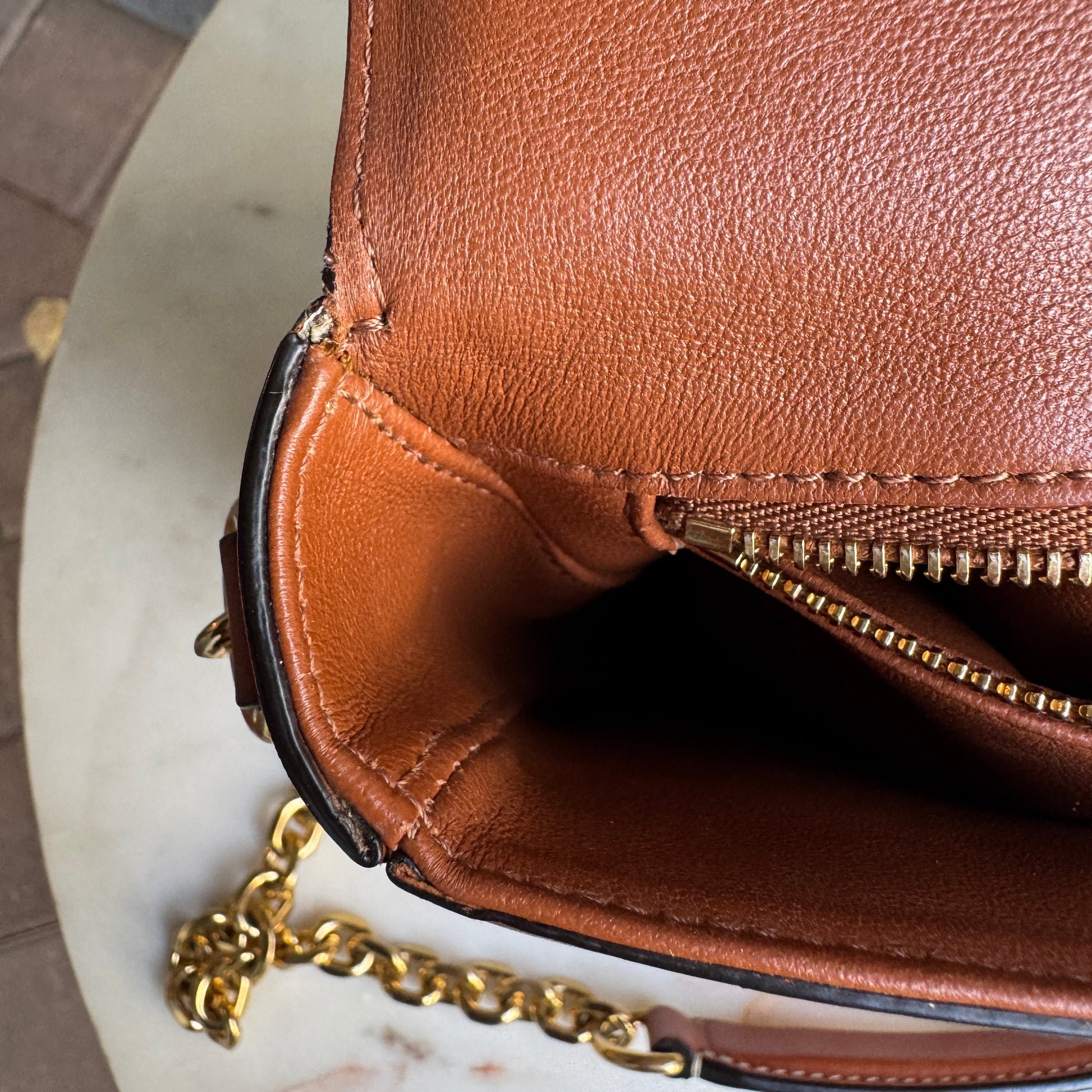 rubbing wear and patina to leather
