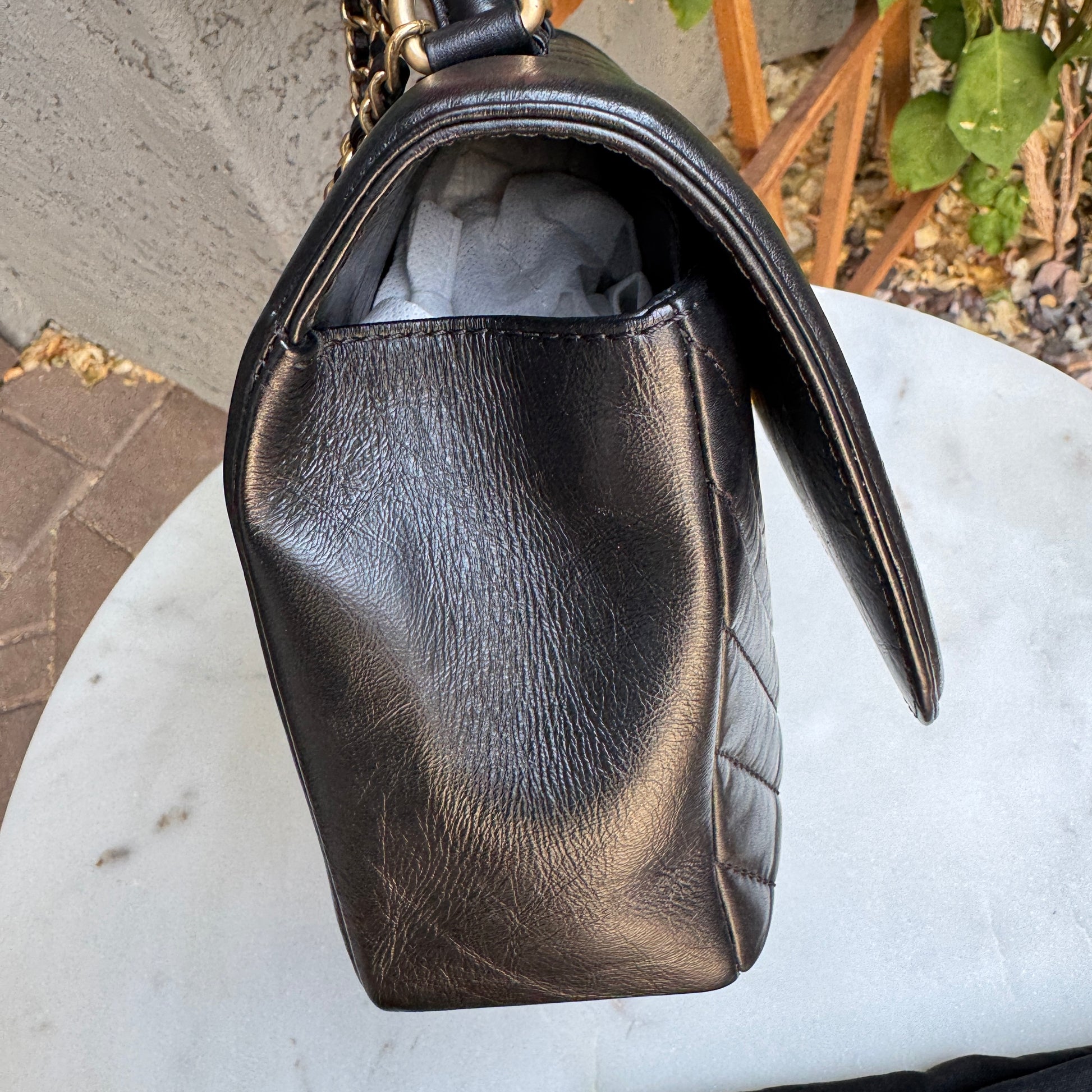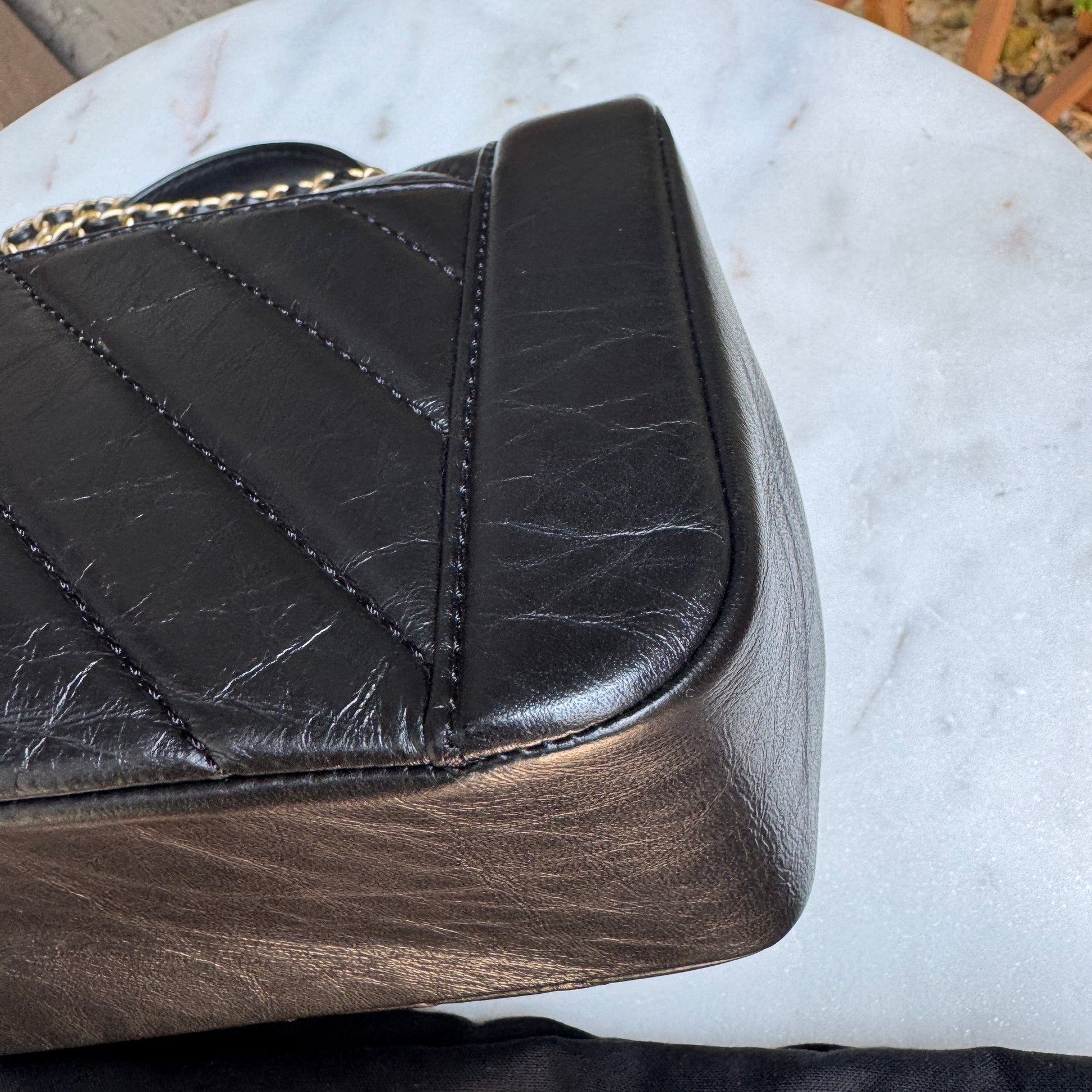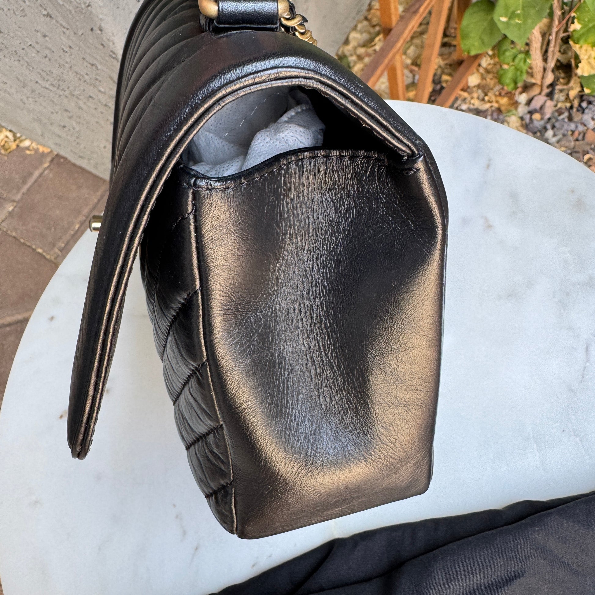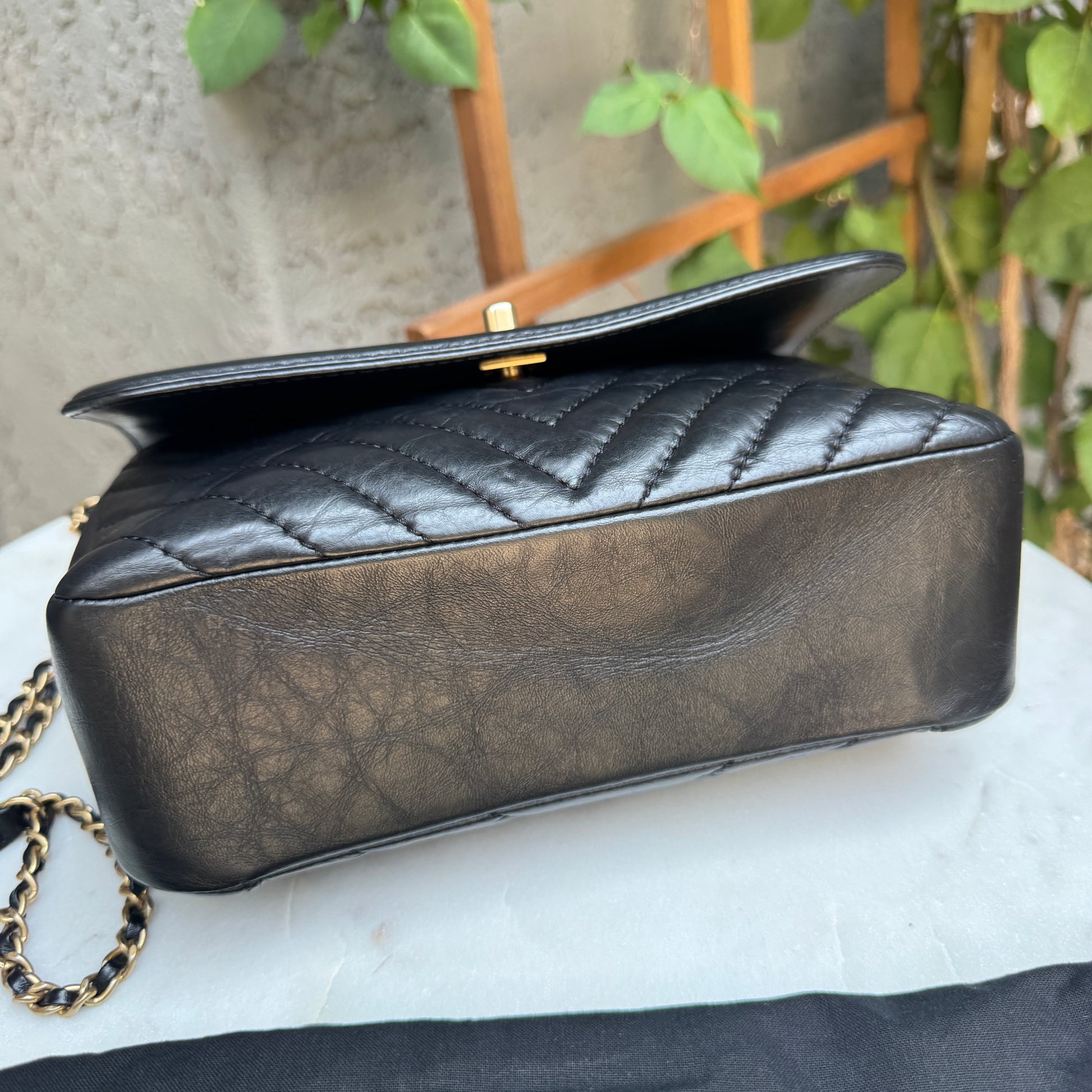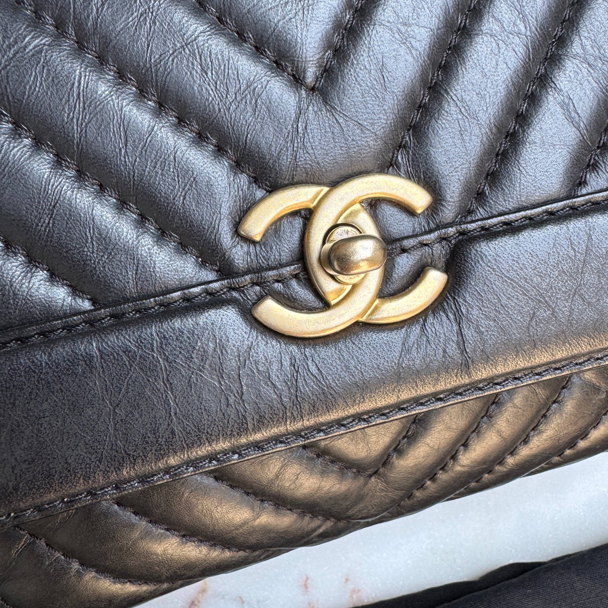 Chanel Calfskin Chevron Quilted Top Handle Flap Crossbody