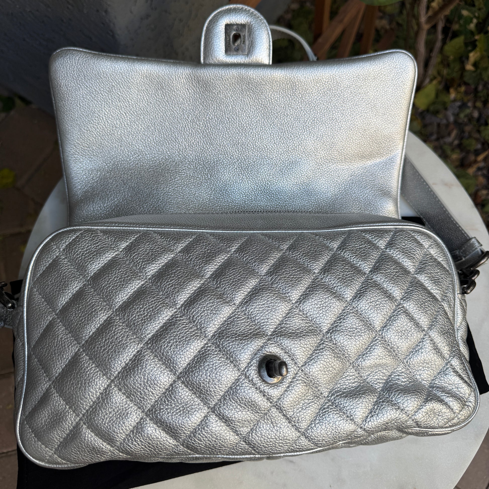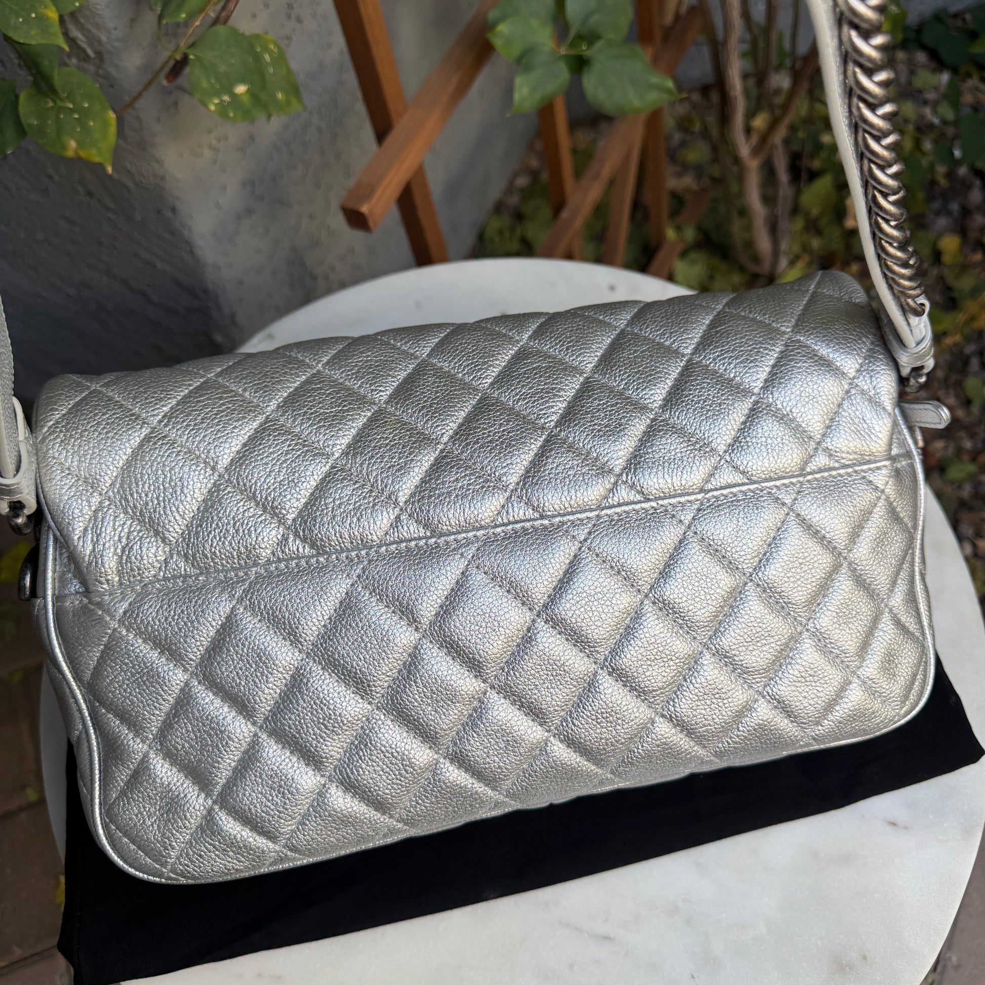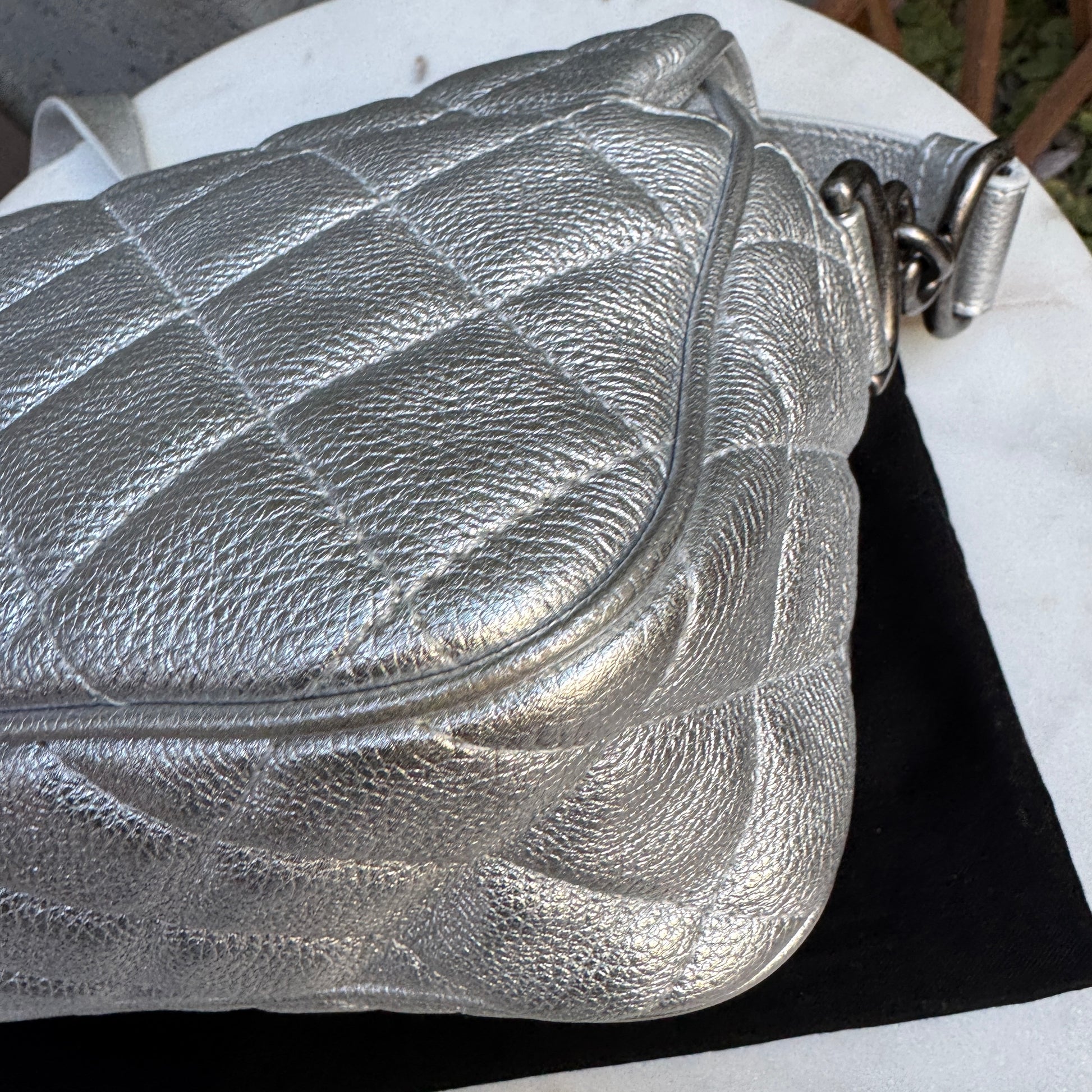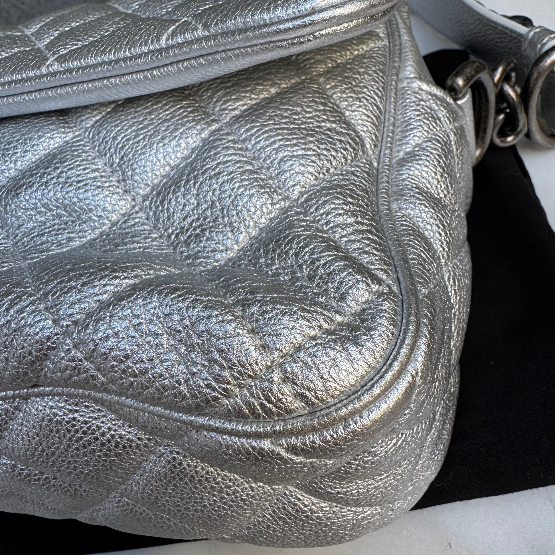 Chanel Silver Quilted Leather Airline Casual Rock Easy Flap Shoulder Bag