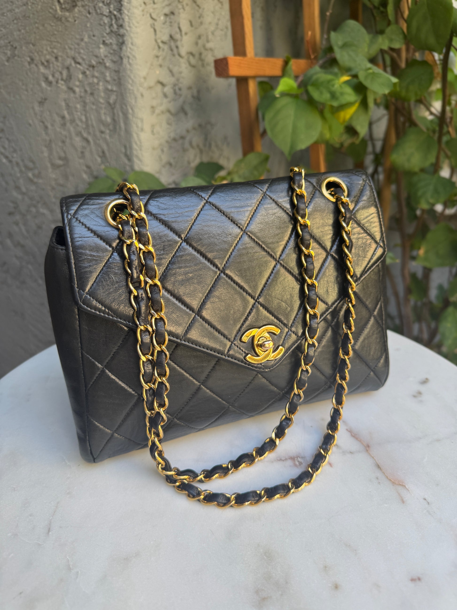 Chanel Vintage Quilted Lambskin Leather Classic Envelope Flap Shoulder Bag