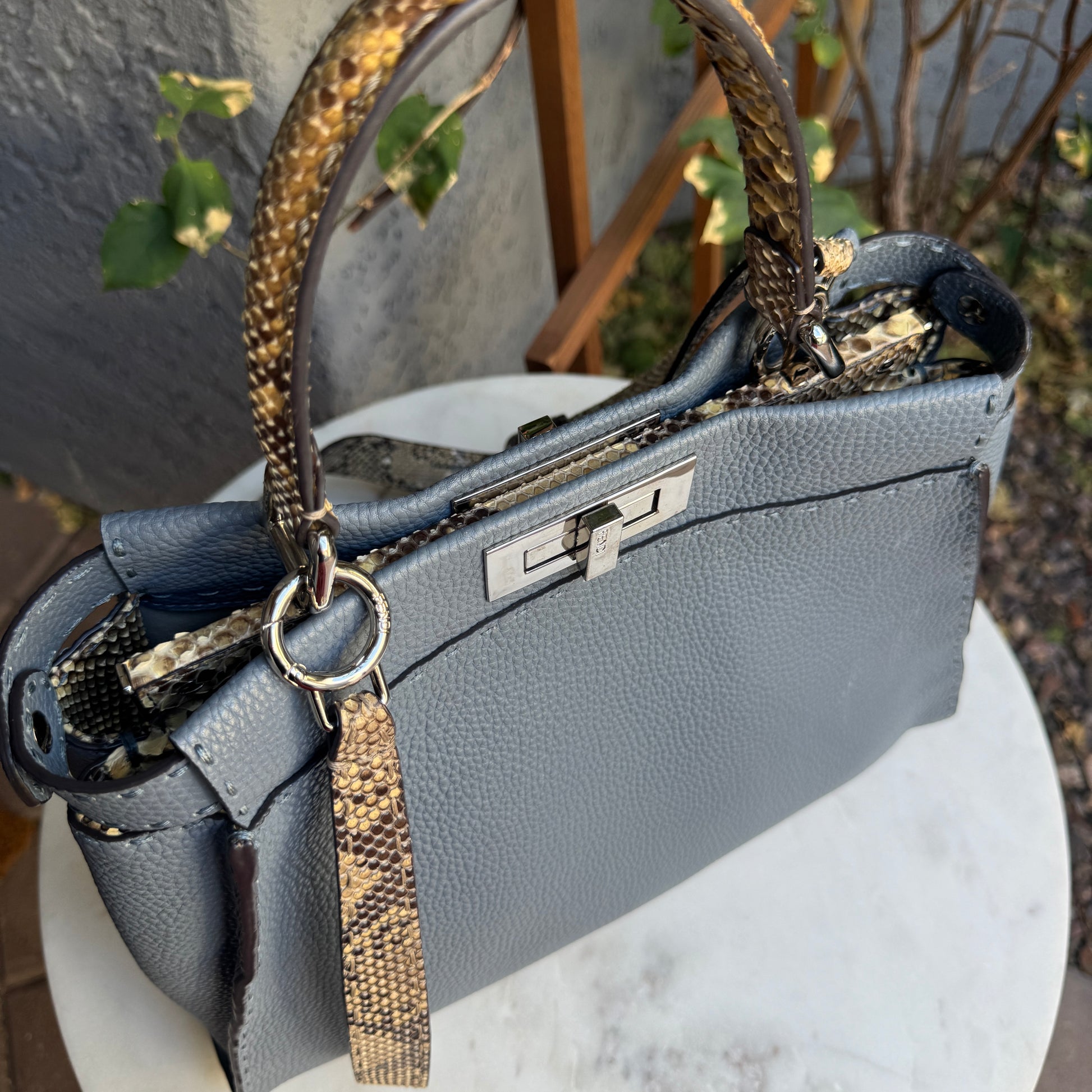 Fendi Cuoio Romano Selleria Leather Python Peekaboo Bag