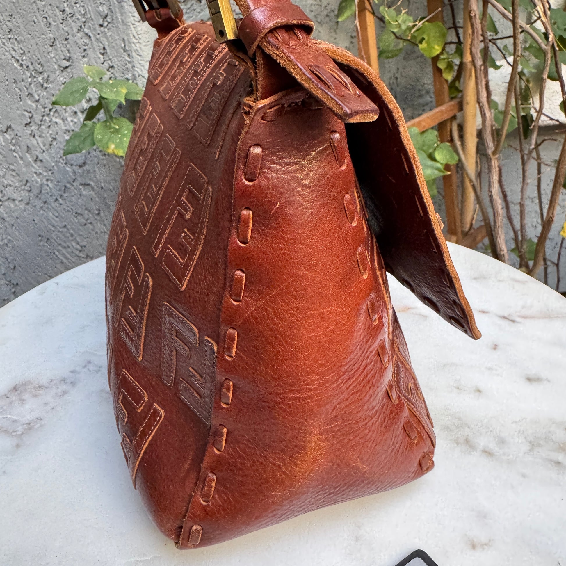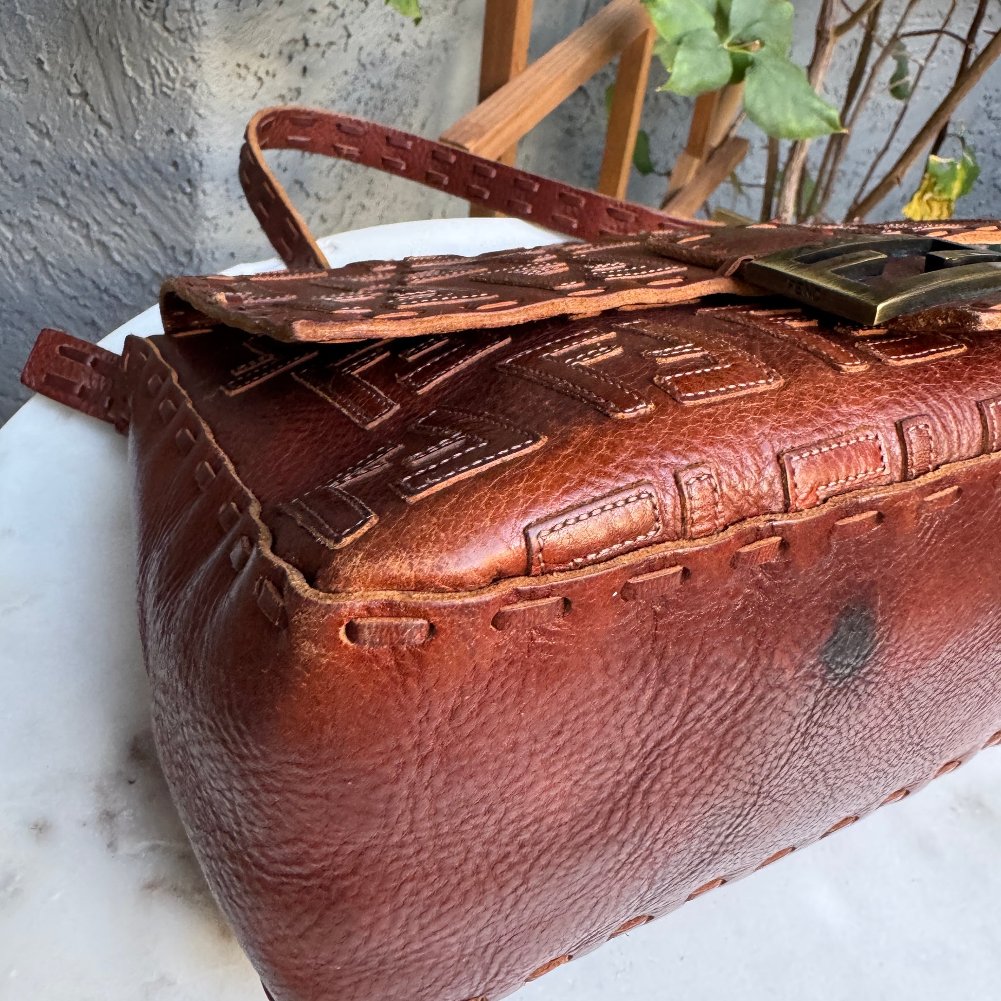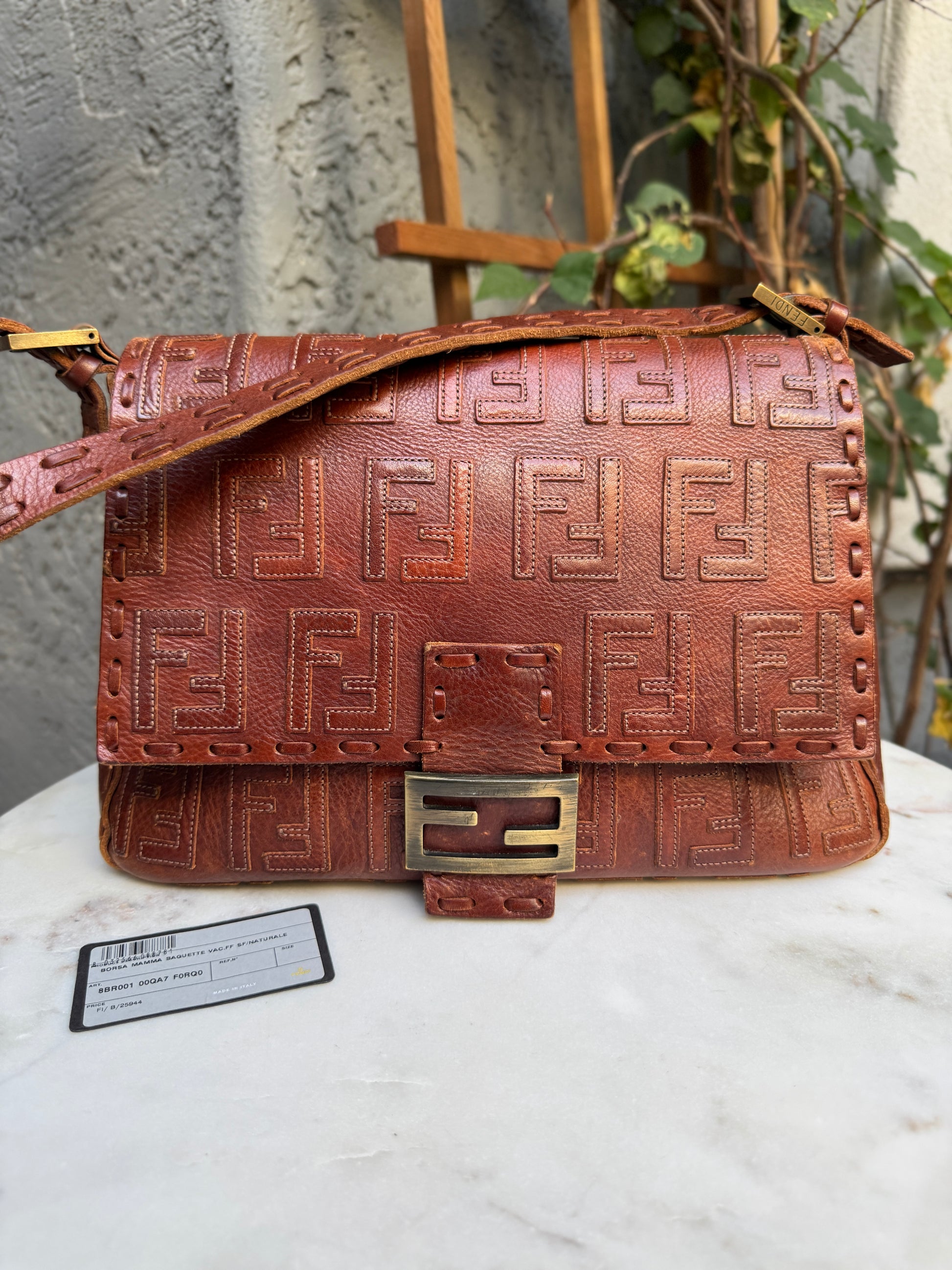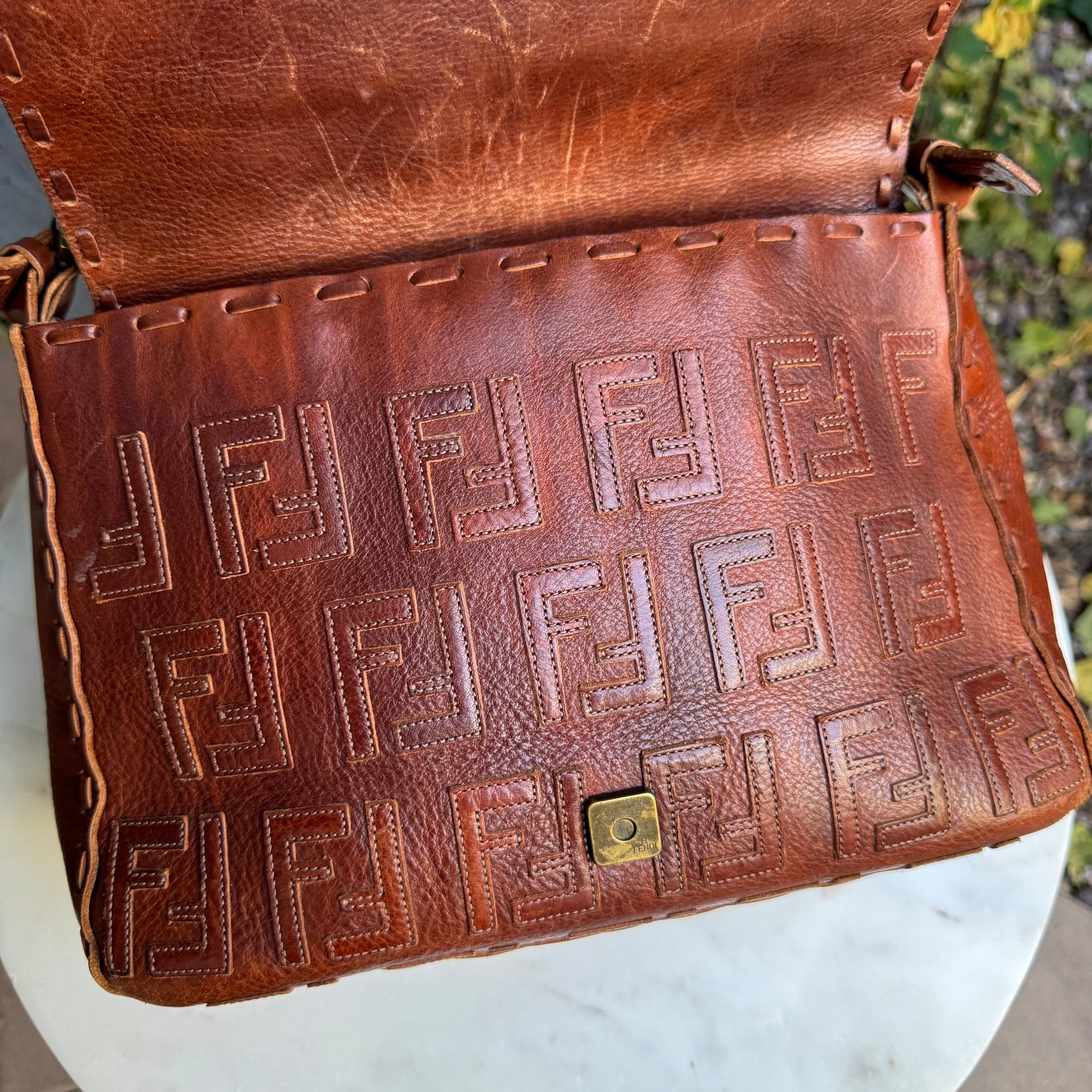 Fendi FF Leather Stitched Monogram Mamma Baguette
