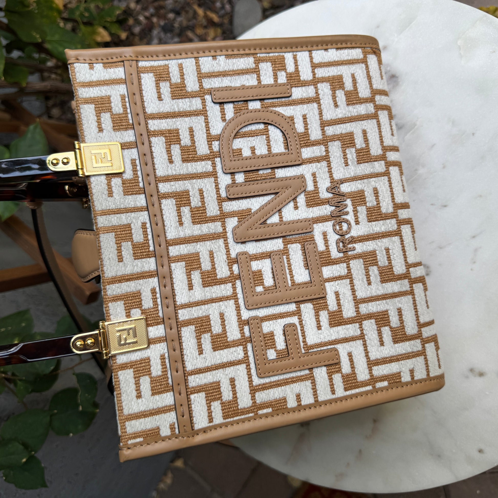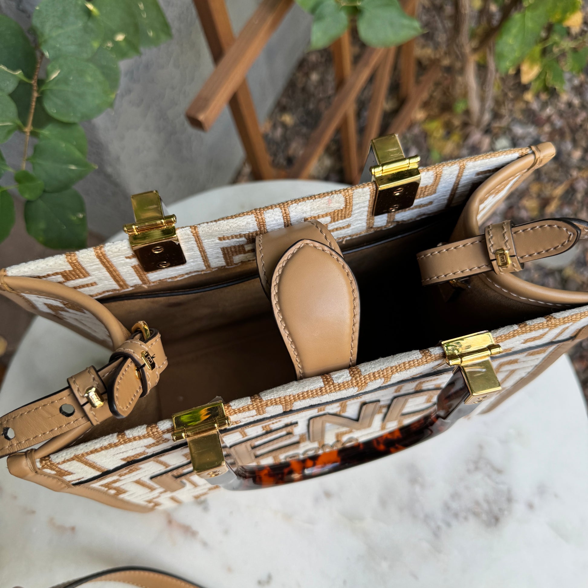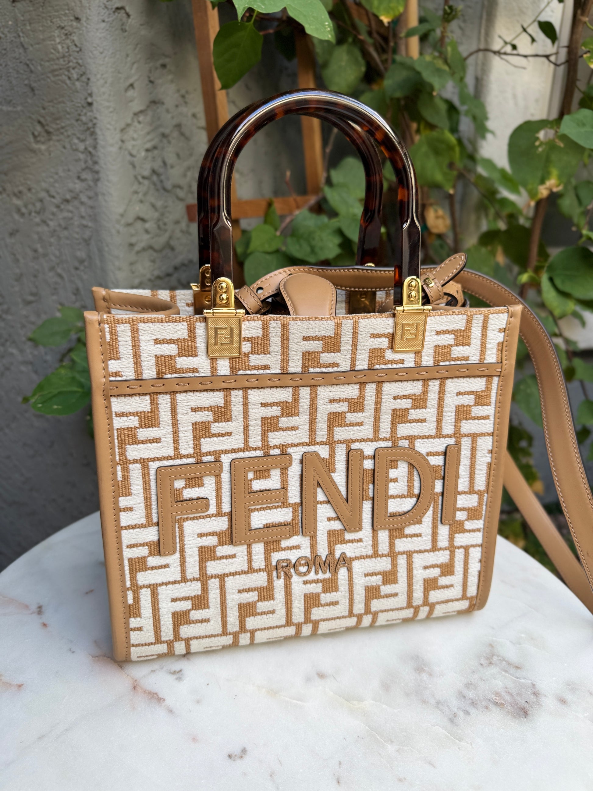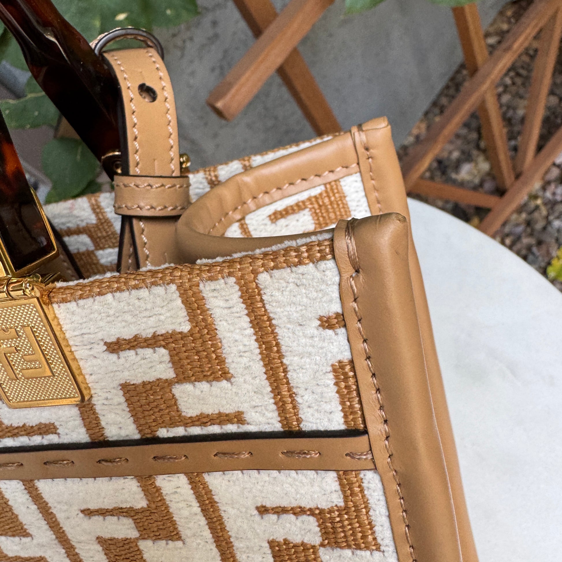 Fendi Small Zucca Monogram Woven Sunshine Shopper Tote